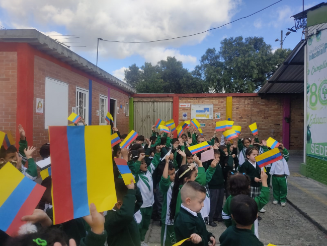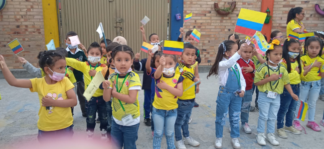 Los niños y las niñas alzaron su bandera y celebraron a viva voz lo hermoso de pertenecer a este bello pais Colombia, orgullosos de reconocer su diversidad. Sin duda alguna un momento especial para reunirnos y celebrar fechas trascendentales para nuestro pais.