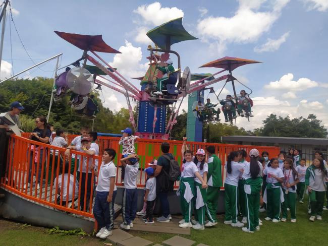 Los niños y niñas de la jornada tarde asistieron al “Ecoparque Los Trapiches” ubicado en San Antonio del Tequendama; un lugar para desconectarse del ajetreo de la ciudad a través de las caminatas ecológicas, los retos grupales en ambientes naturales y la recreación dirigida en espacios abiertos. Los estudiantes de la jornada mañana se gozaron la jornada en el “Multiparque” ubicado al norte de la ciudad; disfrutaron las atracciones que el lugar ofrece y participaron del recorrido por la granja en un día cargado de emociones.